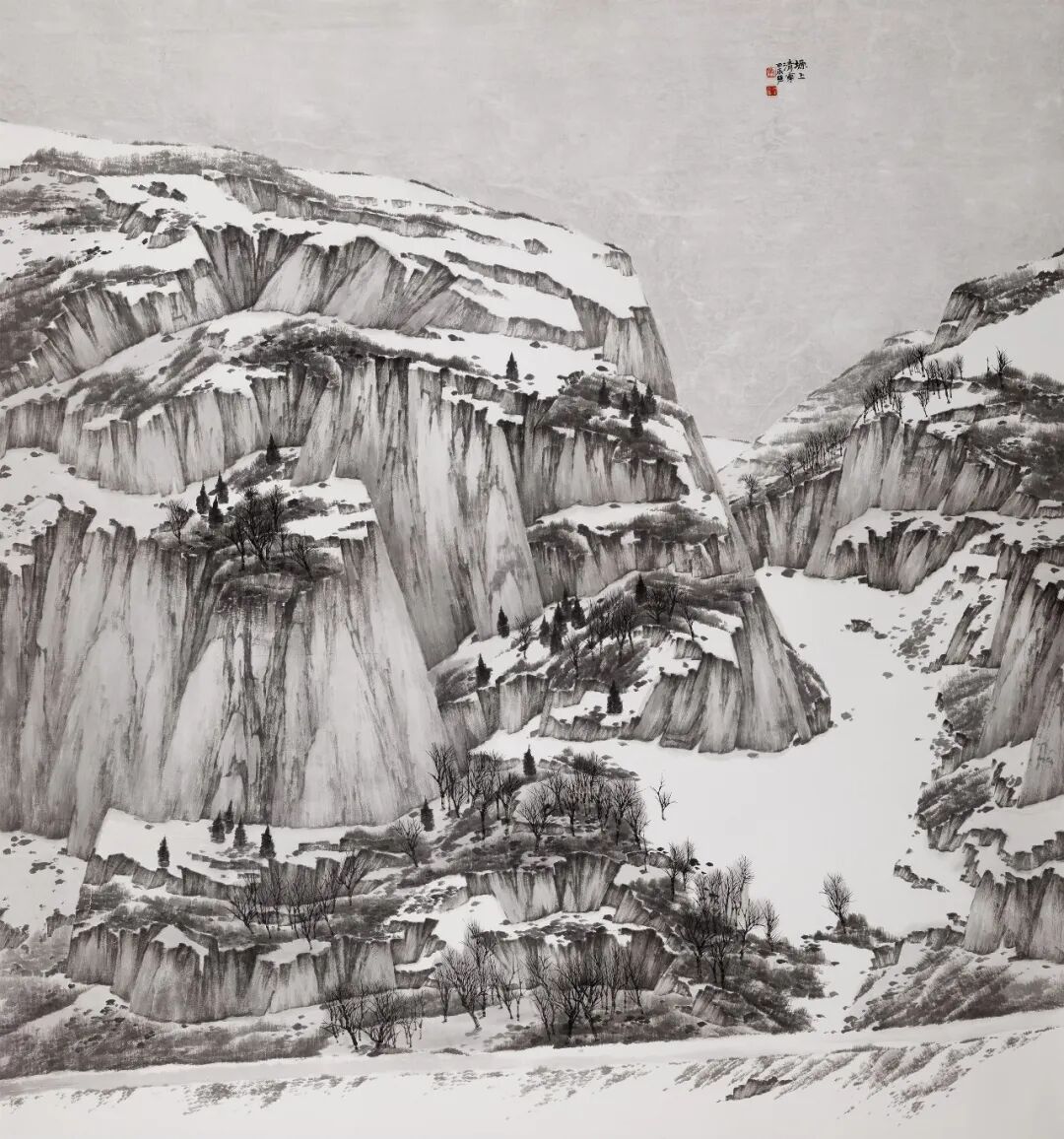 刘卫东以超现代的创作思路,将自身的生命体验与高原的天地气象相融,将高原雪色的旷远意境与当代审美相融,既传承了中国山水画的精神内核,又开拓了高原雪景创作的新路径。